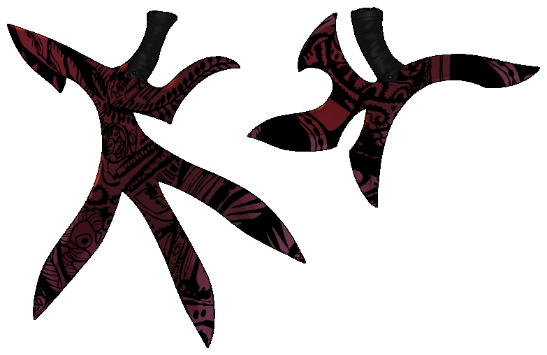 - WEAPONRY— Possesses a set of twin fang-like daggers named Tawrich and Zarich, capable of using them to lock his opponent's weapons or in melee, but they're unreliable (they can break) and terribly designed weapons in general. His skill with using them to fight is average.
